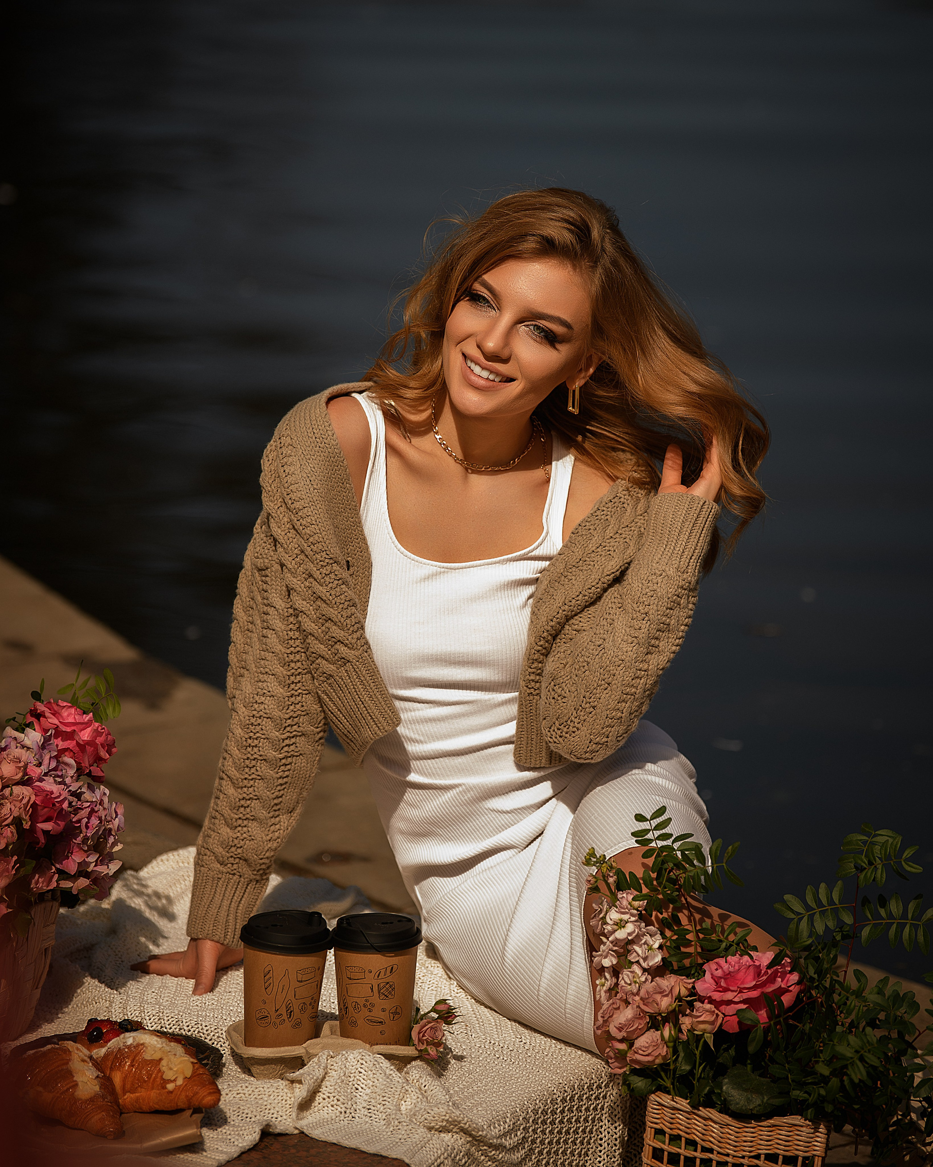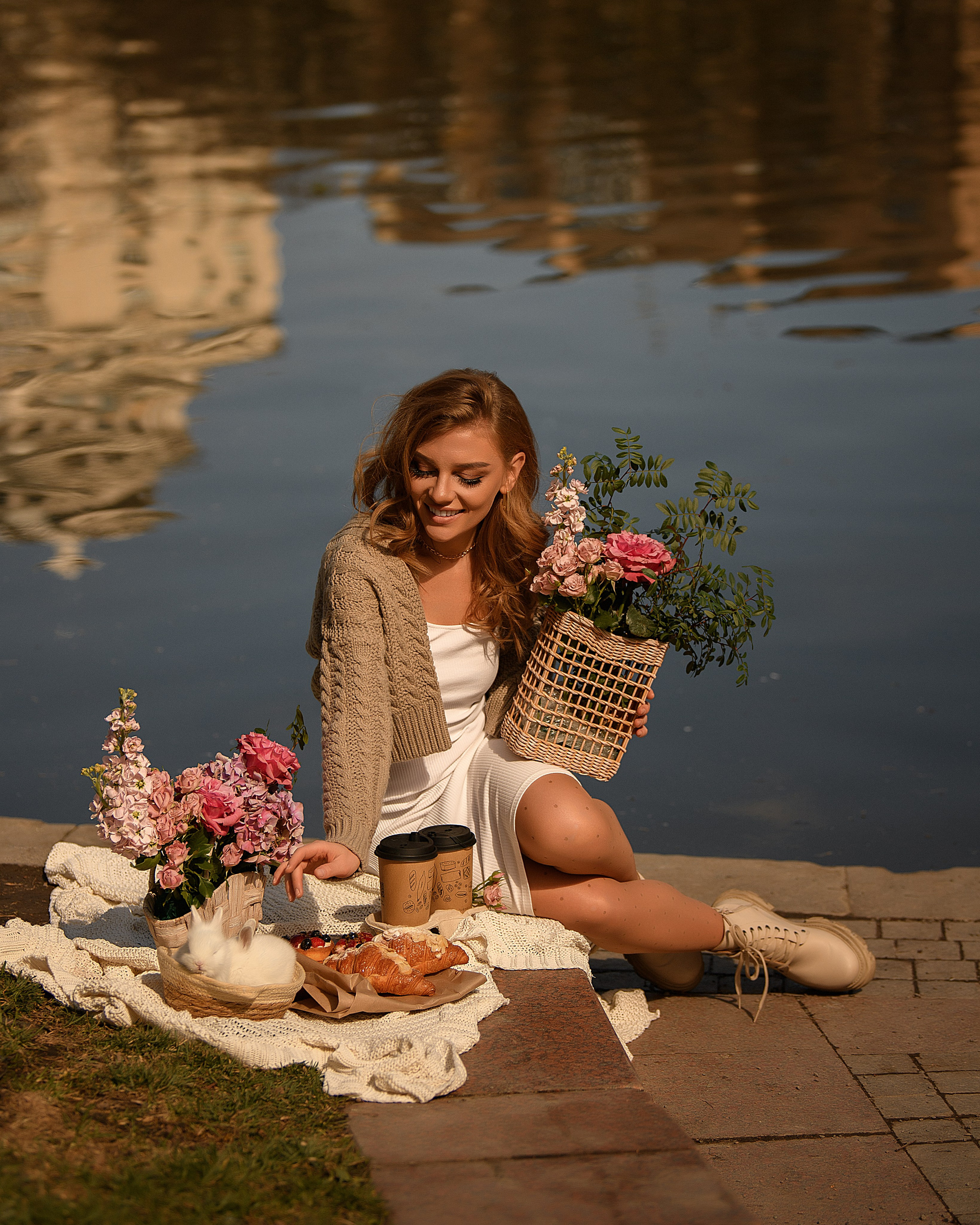 Итак, мы погуляли с Дашей по тихим улочкам, людей еще особо не было, сделали кадры на фоне украшенных входных групп ресторанчиков, добавили кадры с небольшим пикником на фоне пруда. И как раз последние кадры с пикником делались при ярком солнышке.
